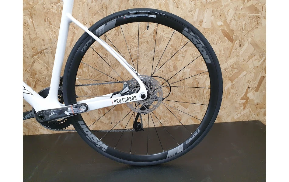 SRAM Force 22 speed Hydraulic groupset provides great value at a low weight utilising carbon crank arms and brake levers, while a wide range 11-32 cassette offers enough options for all gradients. Powerful hydraulic disc brakes supply a controllable bite and stopping power in all conditions.