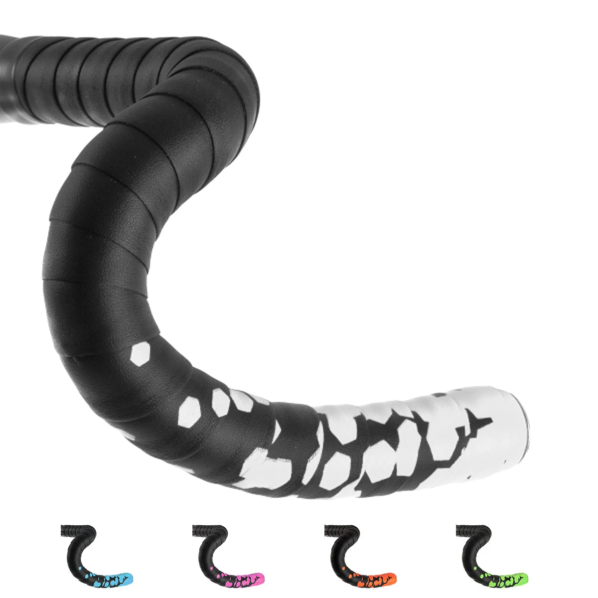 Selcof Splash Bar Tape is a supple and comfortable addition to any bike. With a dual layer leather look upper and a colourful hex splash graded graphic.
